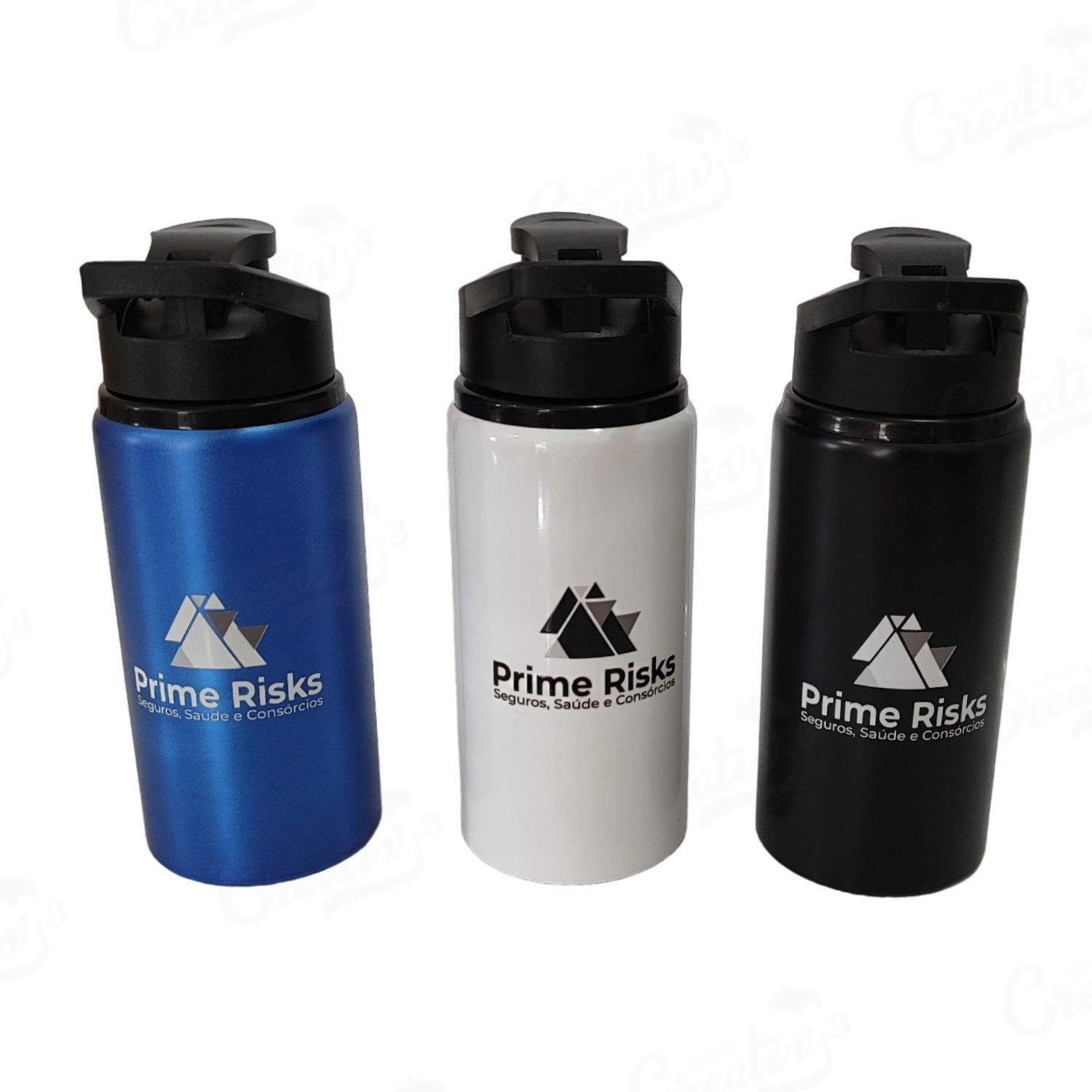 Garrafa de alumínio com capacidade de até 570ml em cores. Tampa rosqueável, bico com tampa vedada de acesso rápido, e alça para transporte.