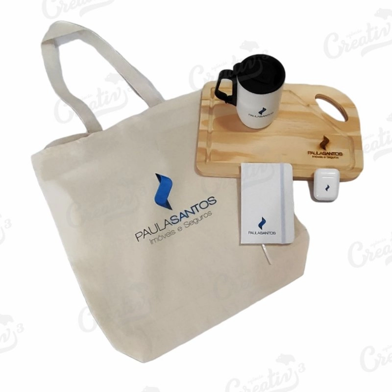 O Kit pode ser alterado conforme necessidade do cliente: Sacola, Caderno, Caneca Inox, Fone de Ouvido, Tábua Churrasco. Cores Diversas | Estampa Colorida ou Laser | Com e Sem Embalagem Personalizada --------- Dica: Adicione quantos produtos quiser no carrinho, faça os comentários no campo "Observações" e clique em "Finalizar". Seu pedido irá para nosso WhatsApp onde retornaremos com valores e condições.